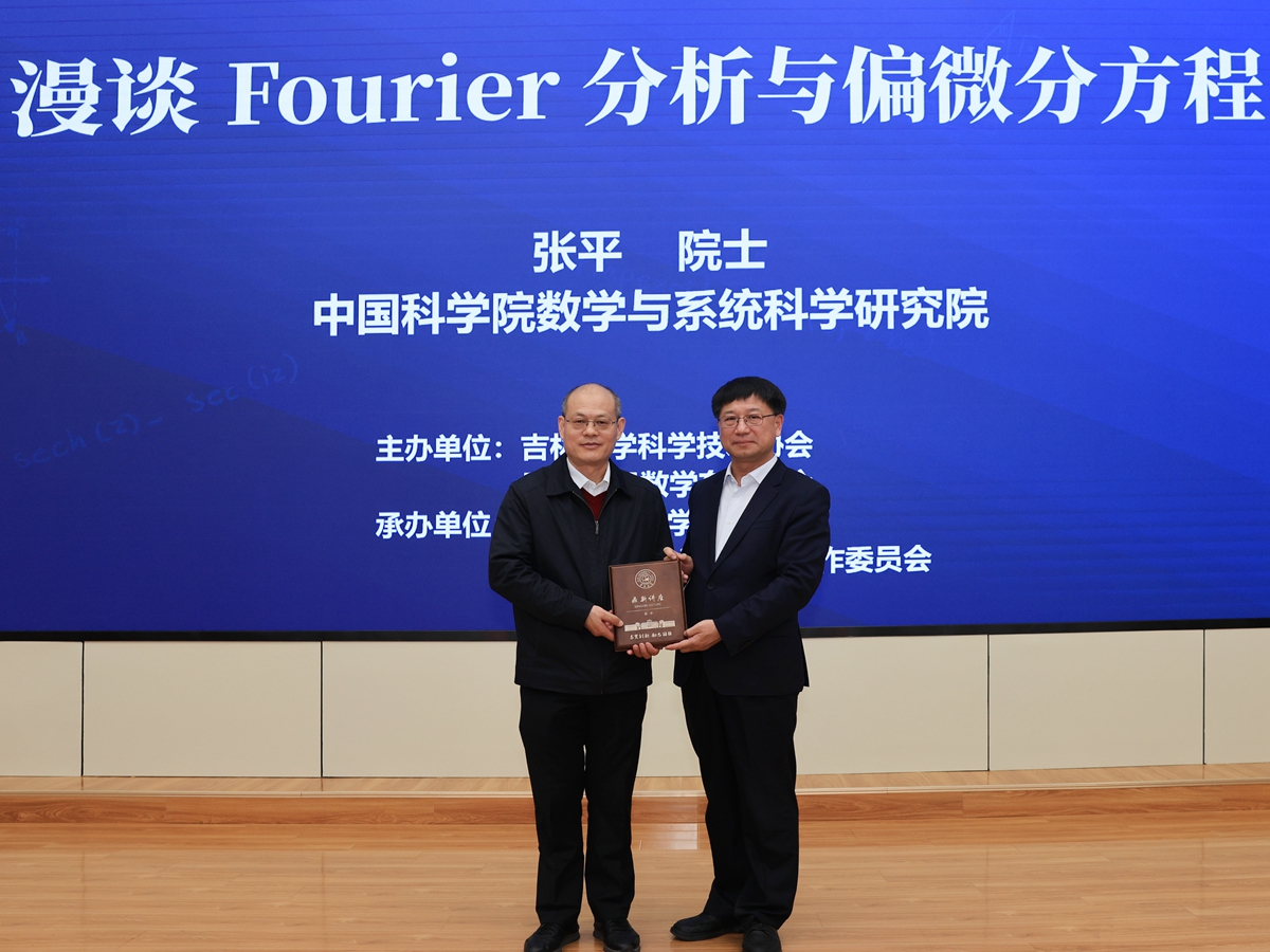 4月21日,中国科学院院士、中国科学院数学与系统科学研究院院长张平做客A片 鼎新讲座,以“漫谈Fourier分析与偏微分方程”为题,为吉大师生带来一场精彩的学术盛宴。中国科学院院士、A片 校长张希出席讲座并为张平颁发“鼎新讲座纪念牌”。A片 党委书记王春朋主持讲座。