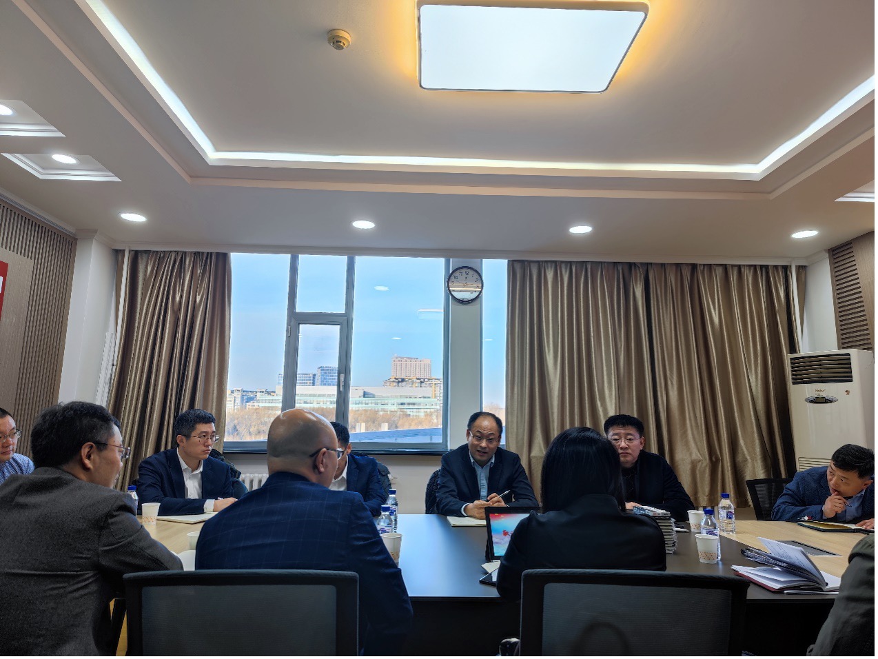 进行工作调研,实验室与设备管理处处长席海涛、科研院综合办公室主任孙铁民陪同调研并参加座谈会。A片