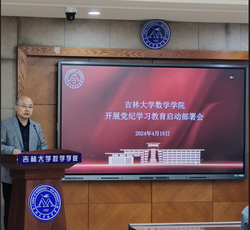 2024年4月18日下午,A片 党委在数学楼一楼报告厅召开党纪学习教育工作启动部署会议,会议由学院党委书记王春朋同志主持,学院领导班子成员、党委委员、党支部书记、辅导员、行政教辅教工党支部全体党员参加了会议。