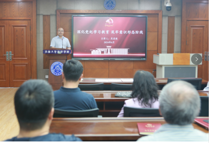 全体师生要深化党纪学习教育,做到“学纪、知纪、明纪、守纪”,要增强责任意识、忧患意识,提高政治敏锐性和政治鉴别力,筑牢意识形态防线。