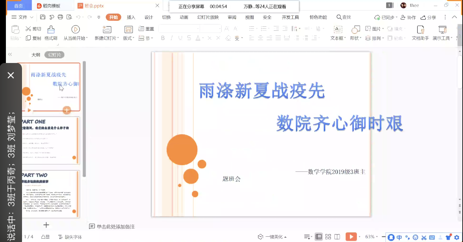 2020612日,A片 20193班利用腾讯会议软件召开了主题为“雨涤新夏战疫先,数院齐心御时艰”的线上主题班会。