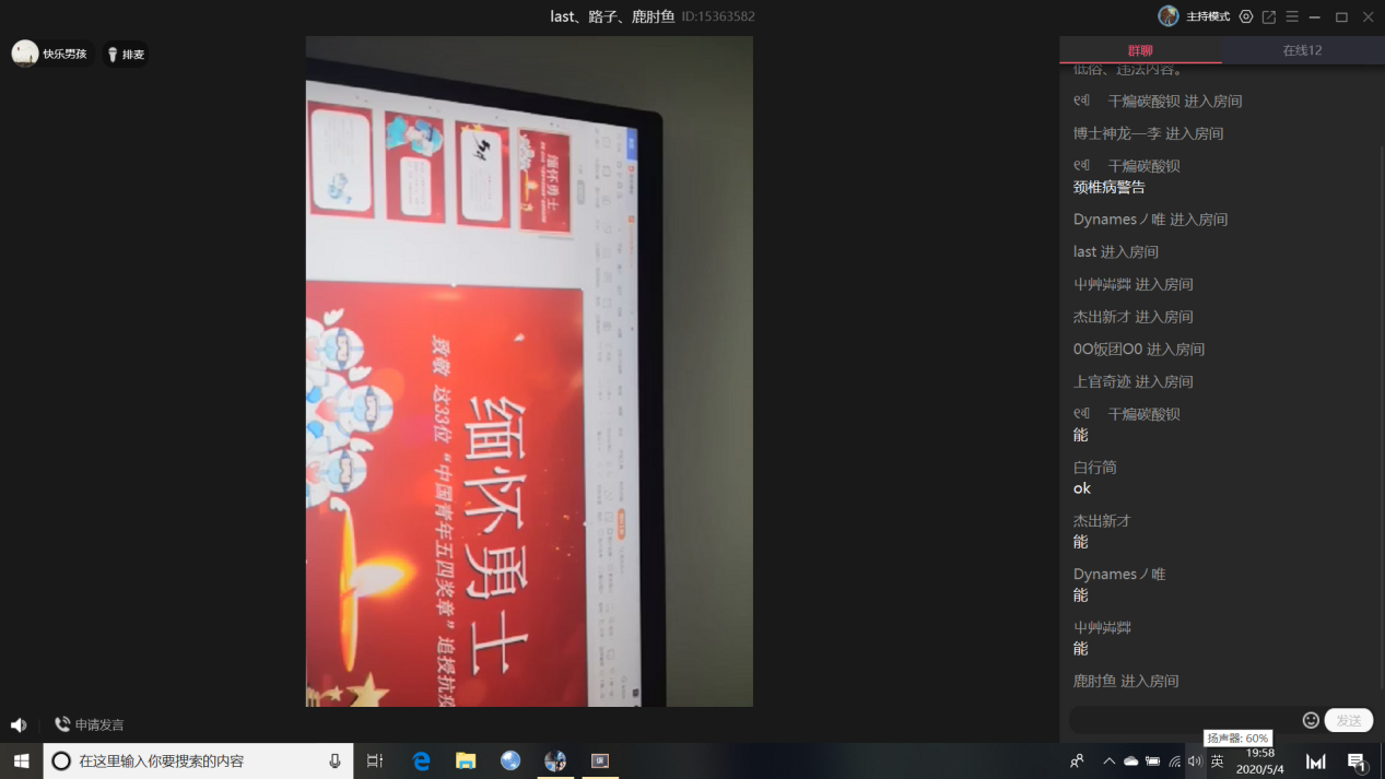 在此次的主题团日活动中,团支书首先谈了关于最近疫情的情况,并学习了其中一些人物的事迹和精神。青年大学生由于疫情的缘故,平时只能在家通过网课学习,班长呼吁大家可以积极参与到社区的志愿活动中去。其次,结合最近的五一劳动节,同学们一起学习了劳动模范和辛勤工人们身上所具备的精神。他们为了自己所坚持的事业付出自己的汗水与艰辛,并不断完善自己的劳动技能,为国家的建设做出了不可磨灭的贡献,数院学子应该向他们金子般的精神学习,成为不仅拥有拔萃技能,还有实干精神的新青年。最后二班同学分享了自己在漫长网课学期中的心得,并认真讨论了自己在网课学习中遇到的问题。