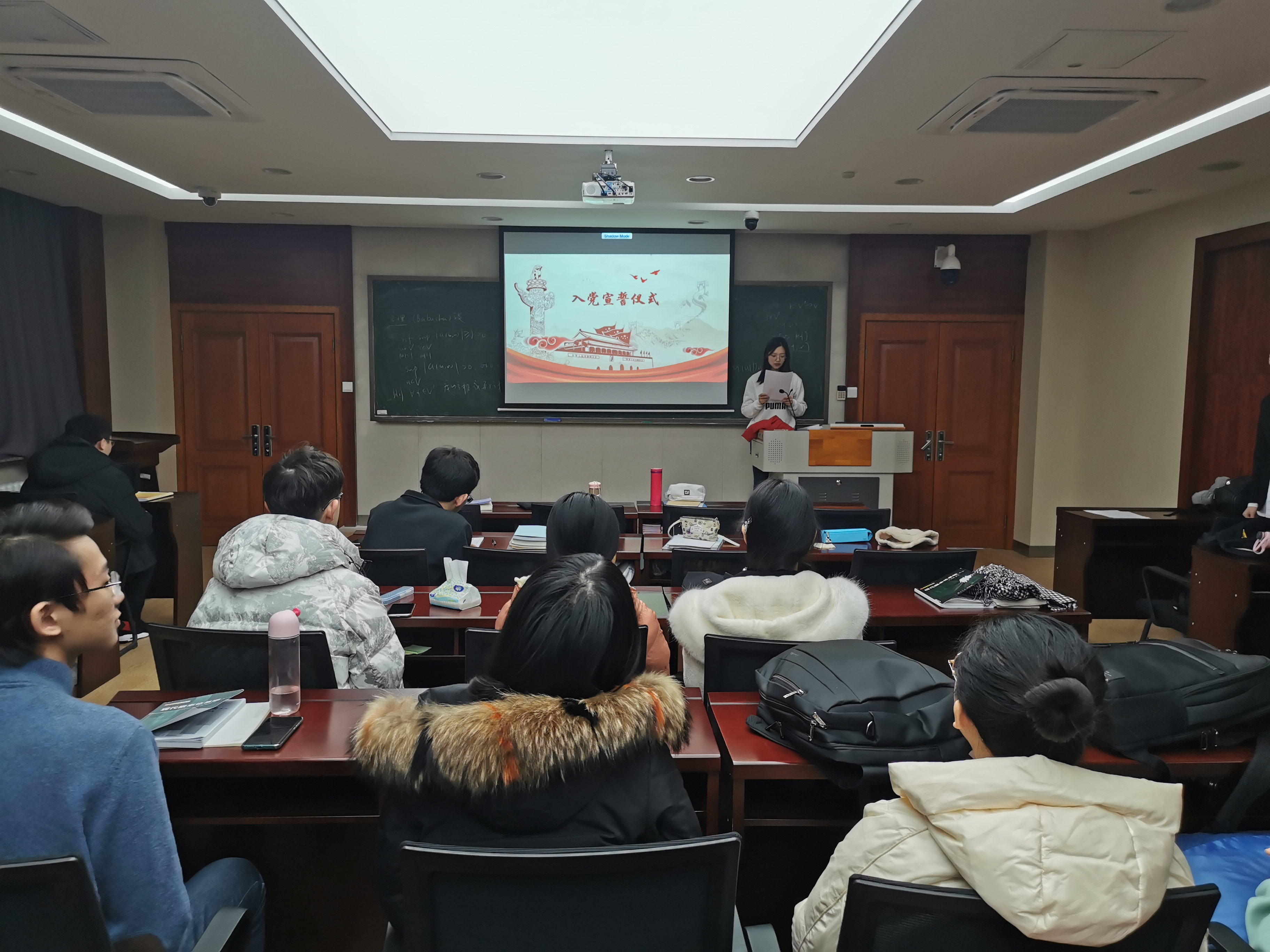 A片 本科生党支部于2020年10月24日中午在数学楼报告厅举行入党宣誓仪式。参加入党宣誓仪式的为本科生党支部全体党员、预备党员,支部所署入党积极分子、发展对象列席会议。