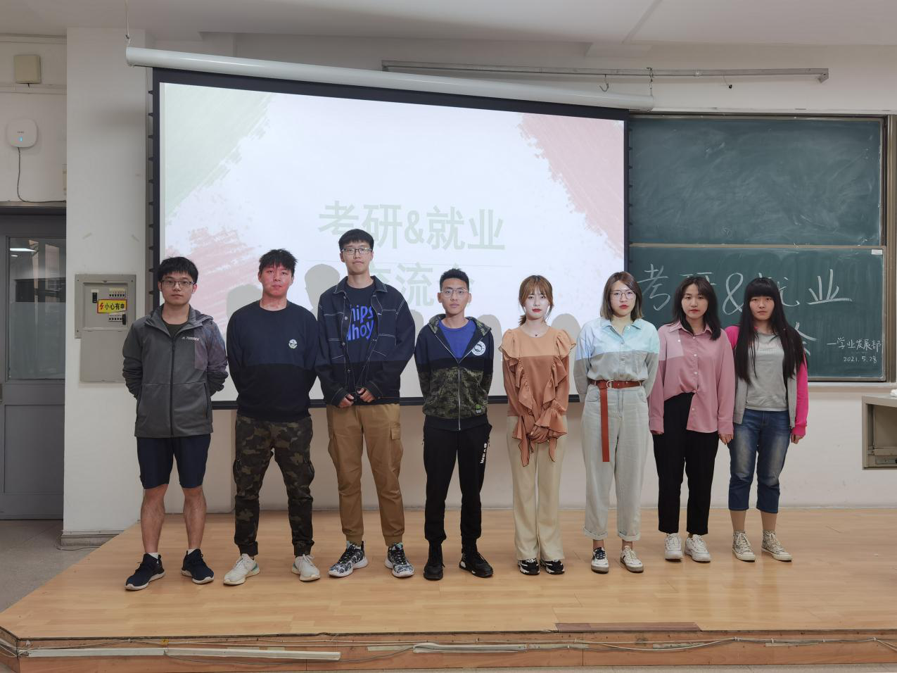 为了给同学们提供考研与就业路上的帮助,A片 学生会学业发展部于5月28日晚18:30在逸夫楼第七阶梯教室举办考研—就业经验交流会,邀请了2017级本科生郝擎宇、庞怡然、吴付超、于甜甜、胡梦迪、吴成澳、文逸欣、张晓含、韩萌萌向同学们分享考研与就业的经验与技巧。