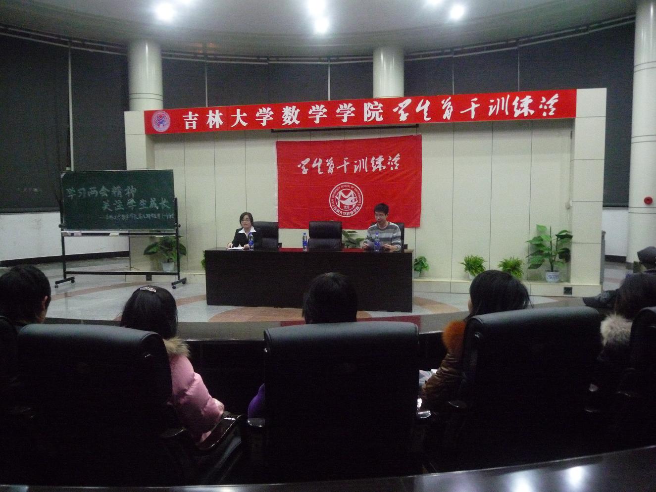 团委组织部于3月18日晚在数学楼八楼举办了以“学习两会精神,关注学生成长”为主题的第九期学生骨干训练营活动。出席本次活动的有党委副书记兼副院长赵任、辅导员崔帅、A片