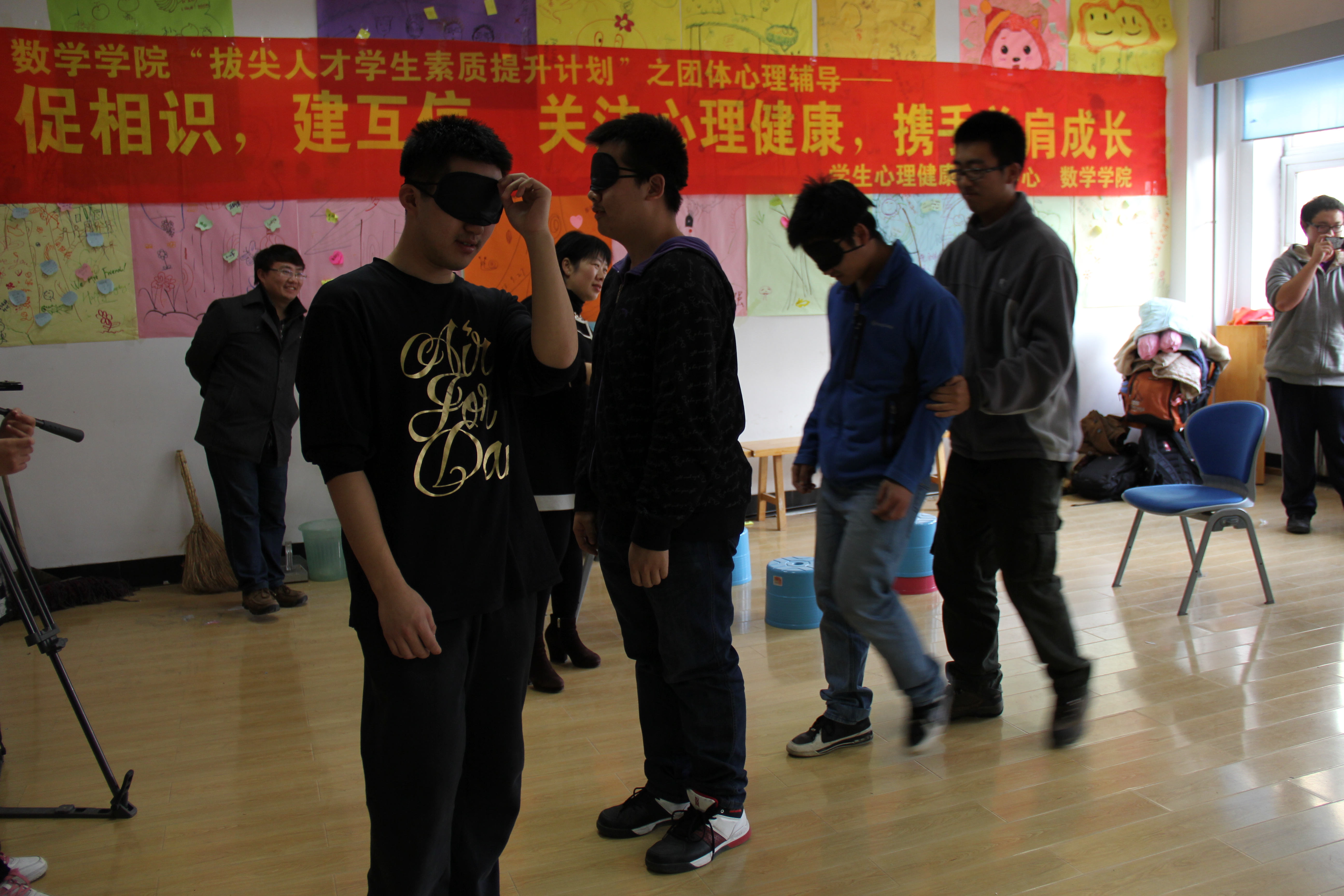 学生心理健康指导中心的何思彤老师用一个“一分钟拍手”的小游戏给大家热身,让大家意识到自己的潜力超过自己的想象;随后是一个“争先登岛”的游戏,同学们被分为三组,每组同学要在限定时间内一起站到仅有一张报纸的面积内,这增强了同学们的团队意识和协作能力;接着是关于信任的游戏,每人都将在不能说话的情况下把戴着眼罩的同学顺利的引领过布满障碍的房间,这个游戏提高了大家之间的信任程度;然后是“价值拍卖”的游戏,从这个游戏中同学们意识到了对自己最重要的是什么;活动最后每个小组的同学画了自己小组的树,并在树上贴上了自己的愿望。