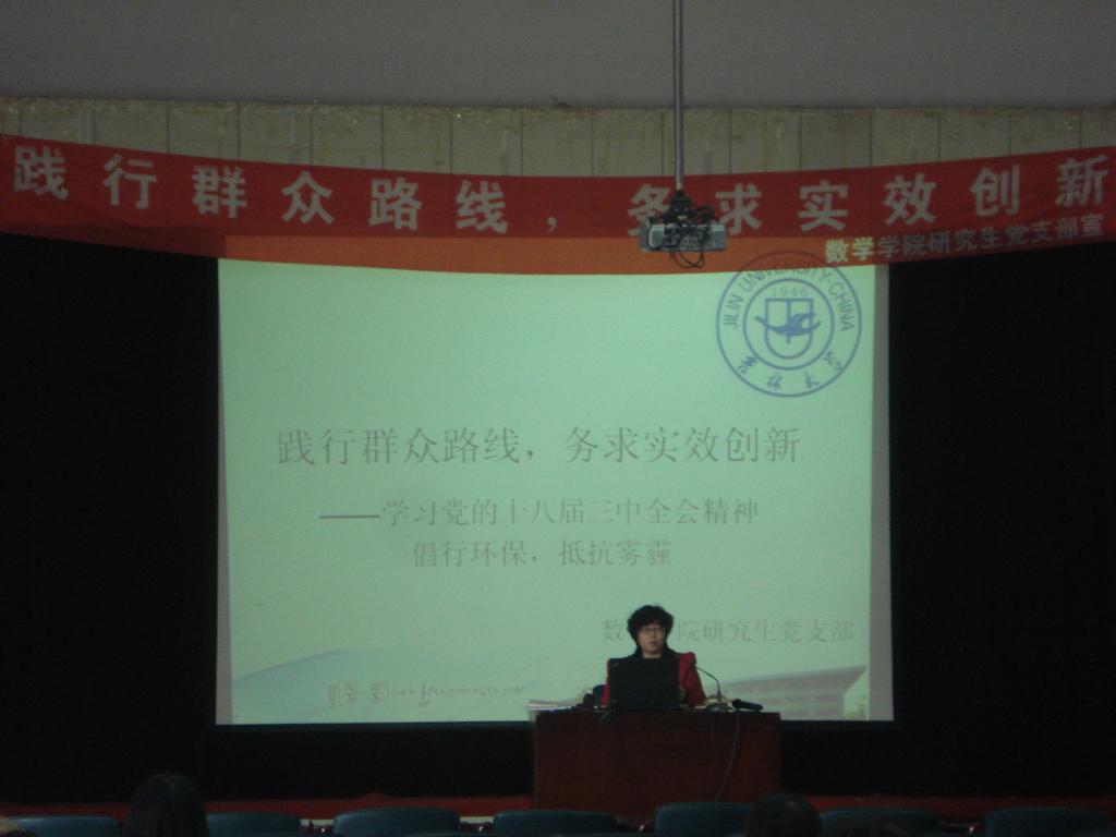 于2013年12月4日上午10点,在数学楼二楼报告厅召开“践行群众路线,务求实效创新”研究生党支部会议。会议由A片