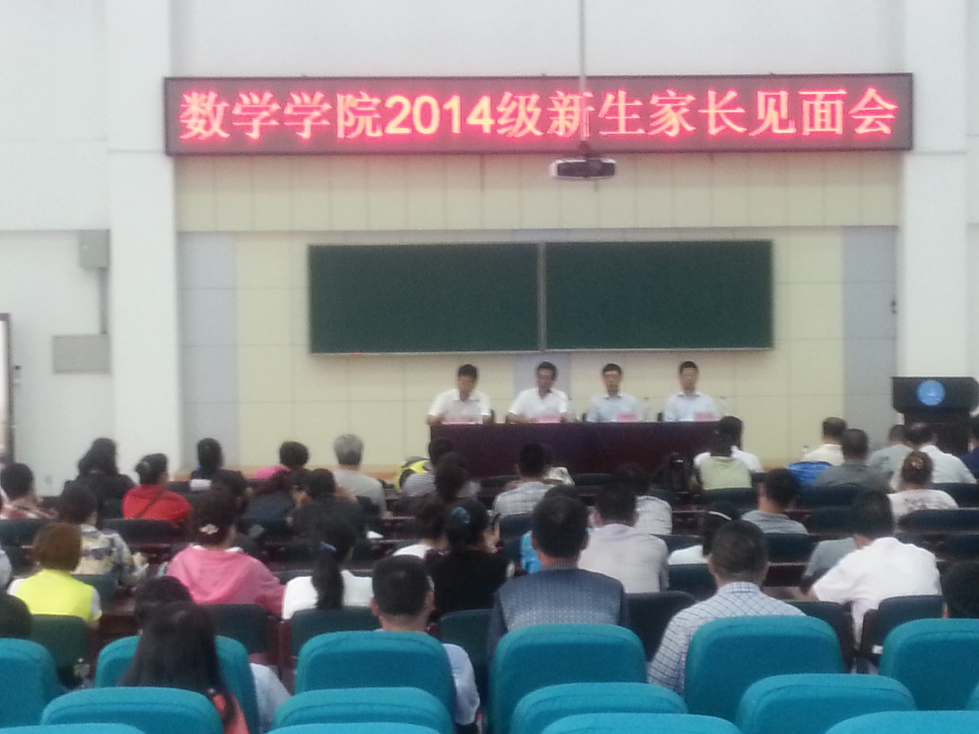 为了使家长更多地了解学校及学院,解除他们的担心和疑虑,8月31日上午9点在数学楼二楼报告厅,学院召开了2014级新生家长见面会。学院领导向新生家长介绍了学校、学院的相关情况,回答了家长关于学习和生活方面的问题。并承诺定会帮助新生明确学习目的和定位,迅速完成角色转变,请家长们放心。