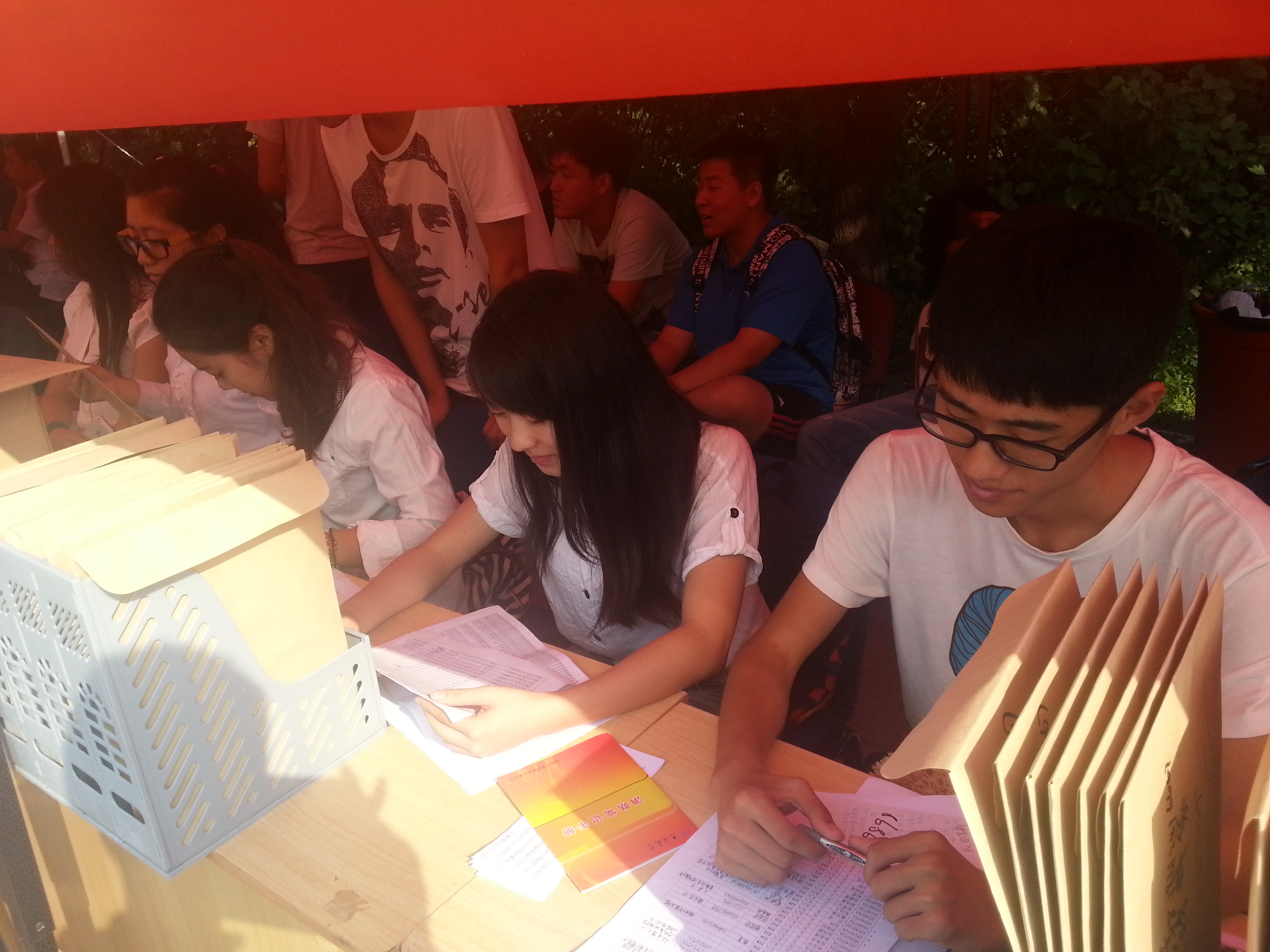 29日上午10点在布置好迎新场地之后,迎新工作也拉开了序幕。