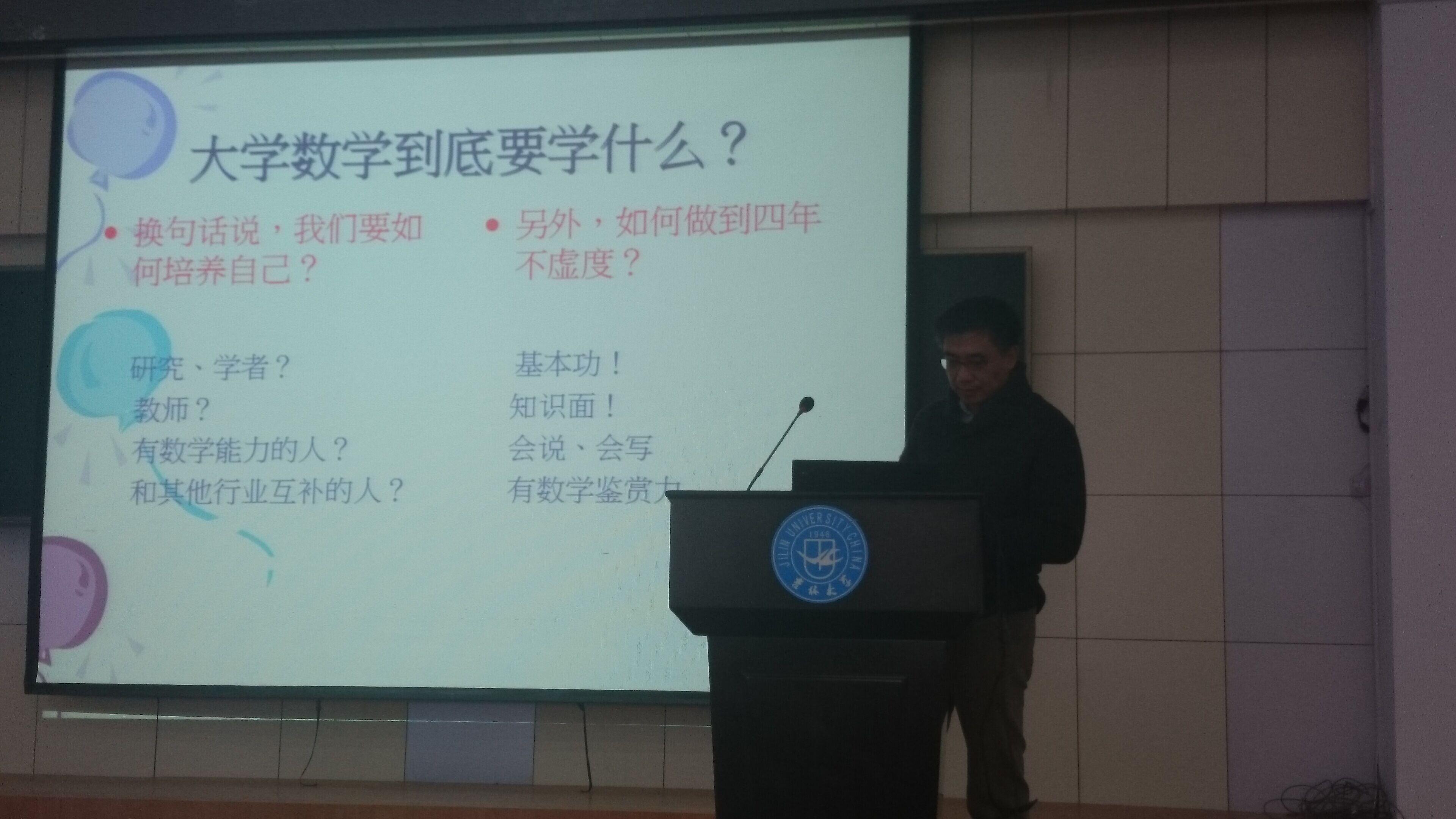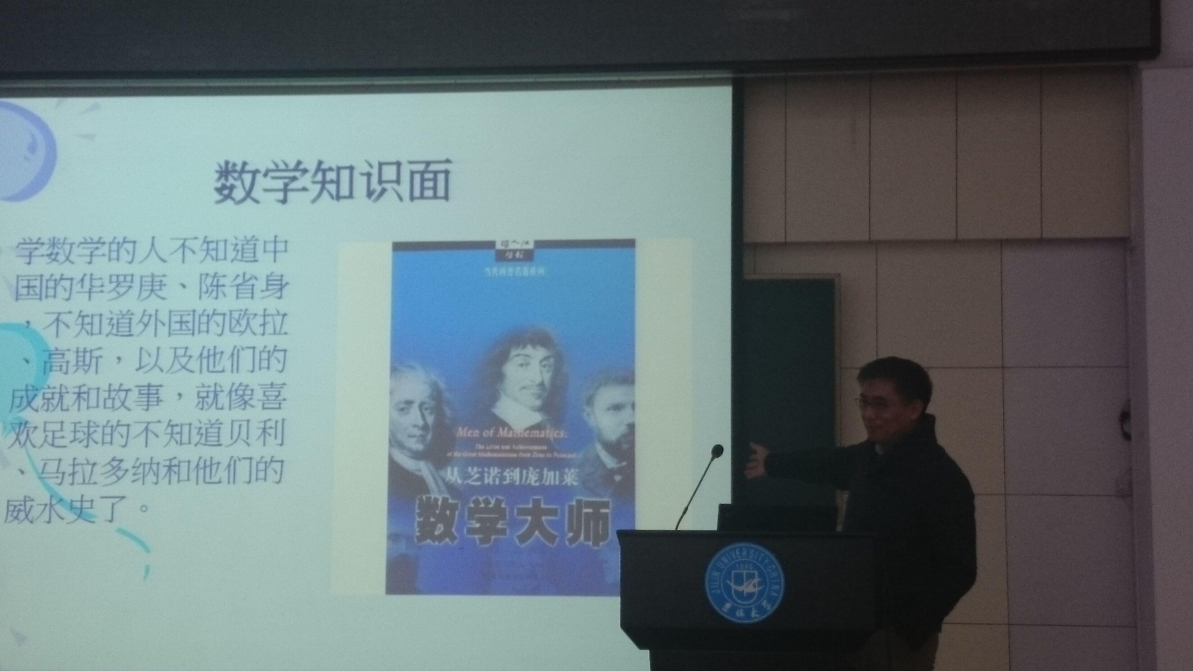 邀请香港浸会大学副校长、《数学文化》主编汤涛教授为同学们做主题为“数学微文化”的讲座。出席讲座的有A片