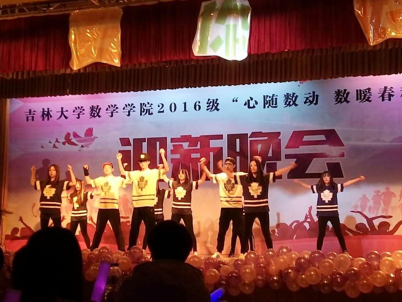 在星光落下的时候,老师们和学长学姐们的祝愿如同带了花香的风,揉碎了青春的梦,引领我们在路上前行,照亮了天空的明净。优雅的吉他手一曲《风景》含情脉脉温柔了整个冬天,开场舞的俊男靓女用华美的动作融化了白雪皑皑的北国春城,琵琶钢琴为伴奏的诗朗诵勾起大家对吉大深深的依恋和爱戴,代团学姐们的清越歌喉绕梁三尺沁入人心。如夜色般的黑衣,如风一样的男子,雷人舞登场的刹那,全场欢腾。乐队的慷慨激昂,舞蹈的热情奔放,歌声的轻柔明亮,在荧光棒的光辉下凝滞了时间,驻留了回忆。