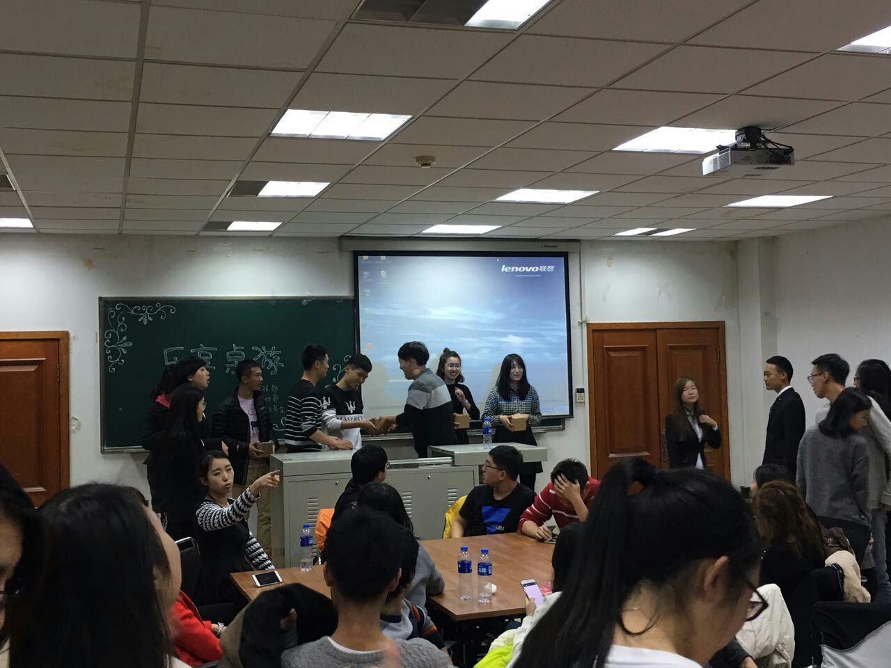 没有辜负同学们的摩拳擦掌,六点半桌游主题活动准时开始。一边进行的是桌游“狼人杀”,同学们围坐一桌开始游戏,随着工作人员的引导,场上气氛时而轻松时而凝重,有眉头紧锁的思考,也有精彩巧妙的陈词,有不幸出局的懊恼也不乏胜利的喜悦。另一边是桌游“UNO(乌诺)”,现场也是笑语不断。游戏结束后,迎来了比赛颁奖的环节。最后,活动在A片