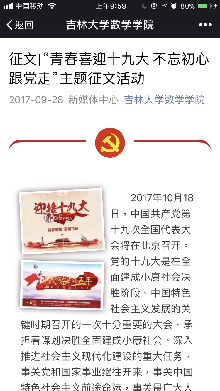 团委社会实践部于九月二十九日至十月九日举办了“青春喜迎十九大 不忘初心跟党走”主题征文活动。