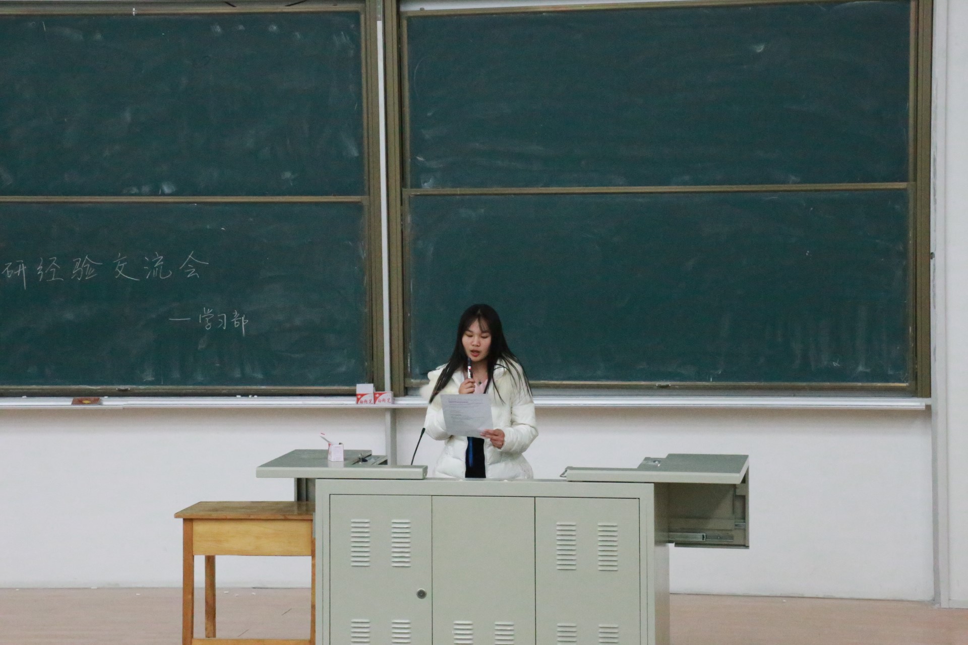 学生会学习部举办的保研经验交流会在逸夫楼第十阶梯教室准时开始。
