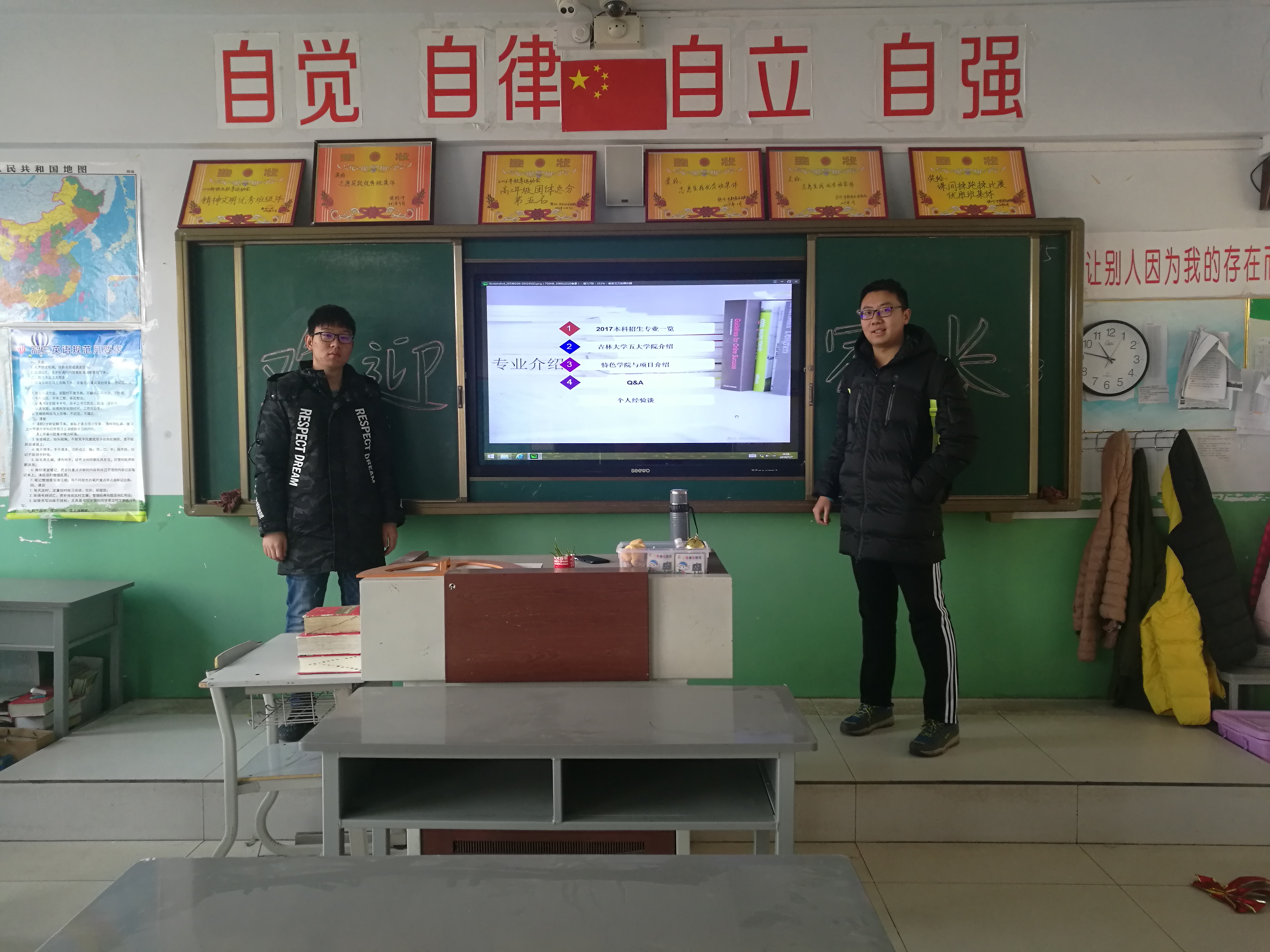 的兴趣。在正式宣讲的过程中,队员们提前准备好了PPT、视频等资料,即使现场突发状况无法使用PPT,也利用投影仪将手机中的吉大美景放给大家看。队员们从A片