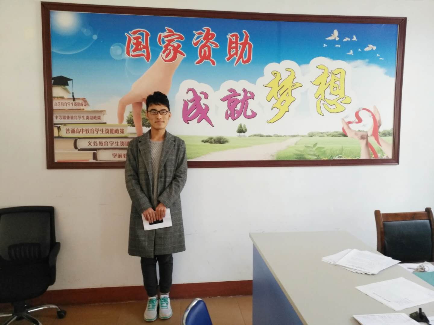 “爱心阶承,助梦青春”国家资助政策宣讲团志愿服务小组成员来到当地的学生资助中心,协助工作人员处理日常性工作,开展志愿服务。