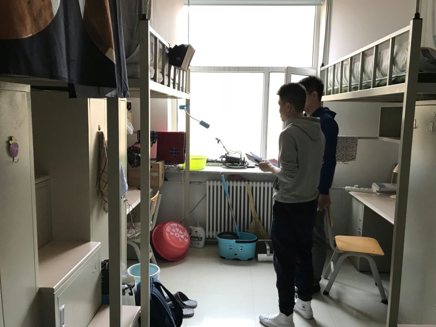 本次院检由生活部先行通知同学们,同学们认真清理打扫后,对男生寝室进行详细的检查,主要包括:宿舍内物品摆放、地面卫生、床铺整理、是否使用违规电器等。随检查随打分,并且拍照记录,在检查之后认真比较,最终评比出优秀宿舍。经过同学们的打扫清理,宿舍整体情况良好,寝室整洁干净,无违规电器出现,室内生活用品摆放整齐,走廊窗台无杂物堆放,室内空气清新舒适。