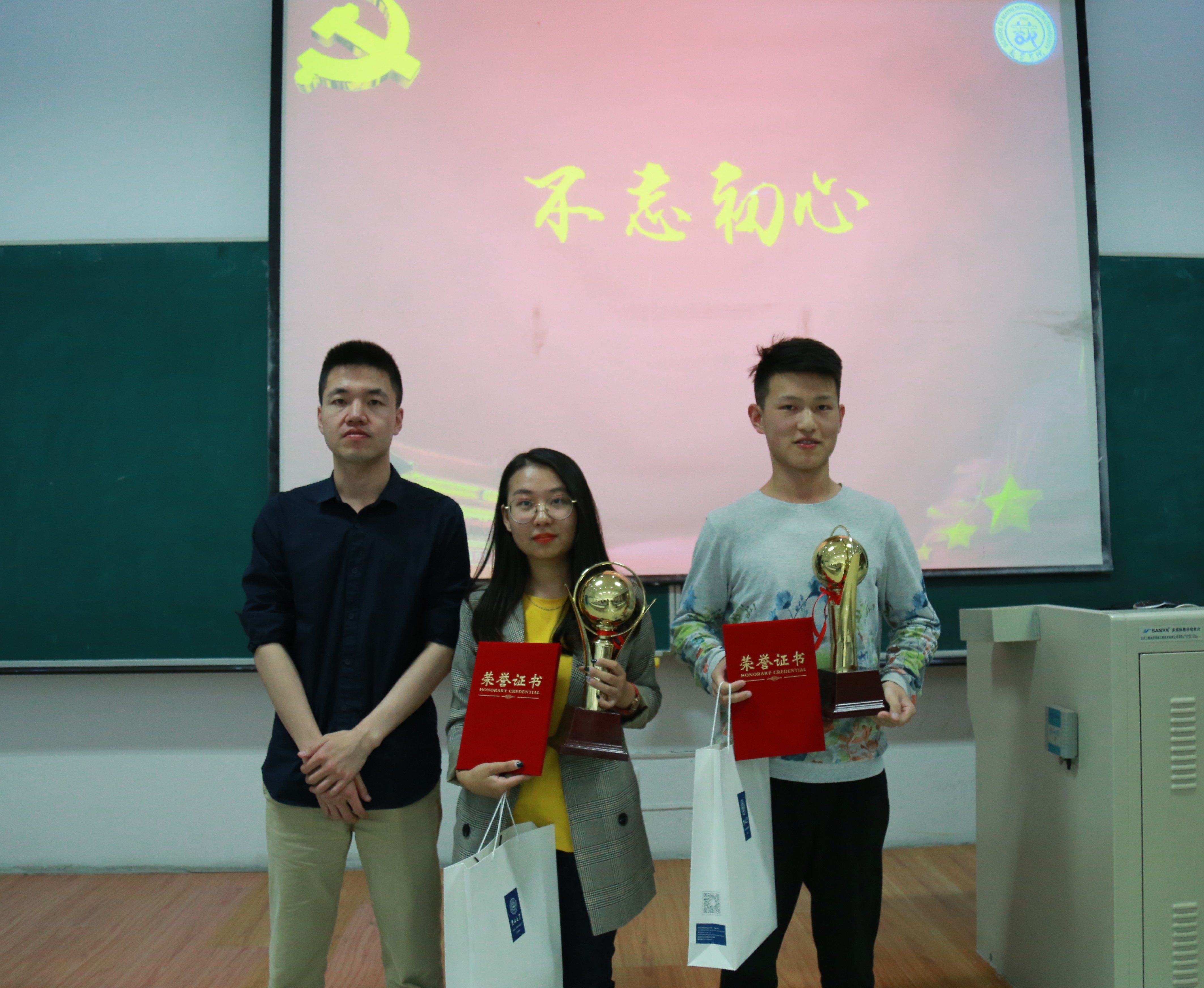大会第二项:实践成果评比。在评比之前,先由主持人介绍了评比规则及奖项设置。评比规则:第一部分是活动前期A片 微信公众号投票,该分数占最终结果的百分之三十。第二部分是评委团评选分数:李庚老师以及主席团成员作为评审团给各代表队打分,该成绩占百分之七十。接下来各实践队代表上台展示了他们的实践经历以及成果。综合两部分的分数,共评选出一等奖两名,二等奖四名,三等奖三名。一等奖:小“数”林支教团以及A片 河南精准扶贫考察小组;二等奖:统计二班“心之小队”,计算一班“梦之队”,“追随总书记,重走初心路”学习团,计算二班“不忘初心”践行队;三等奖:数一&金数吉商志愿团、数应二班红色宣讲团 、统计一班爱心接力志愿者团。由团委书记李庚老师、团委副书记兼社团联合会主席郑旭东、团委副书记李潇琦、学生会主席邱韵分别为获奖队伍颁发奖杯,荣誉证书以及奖品。