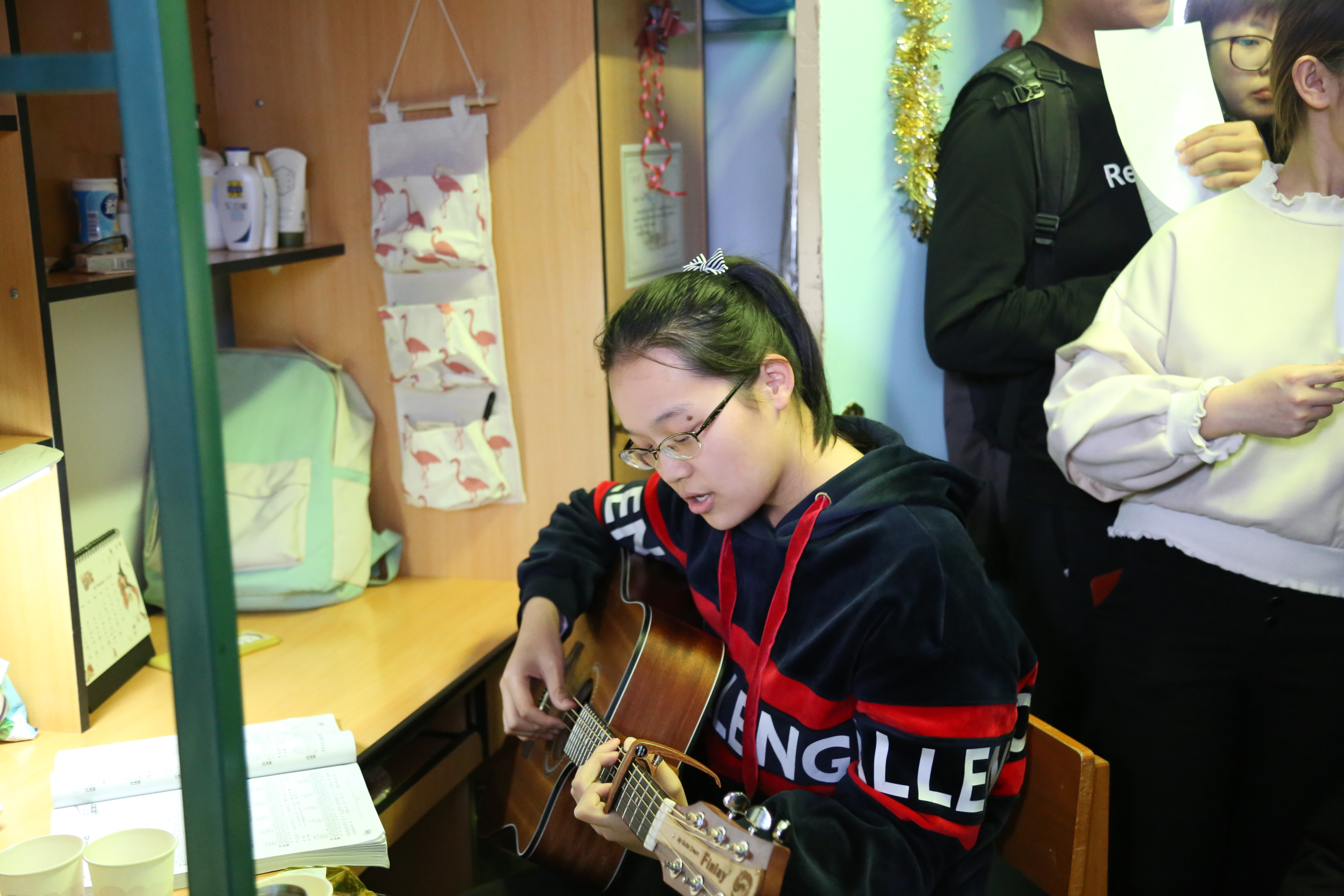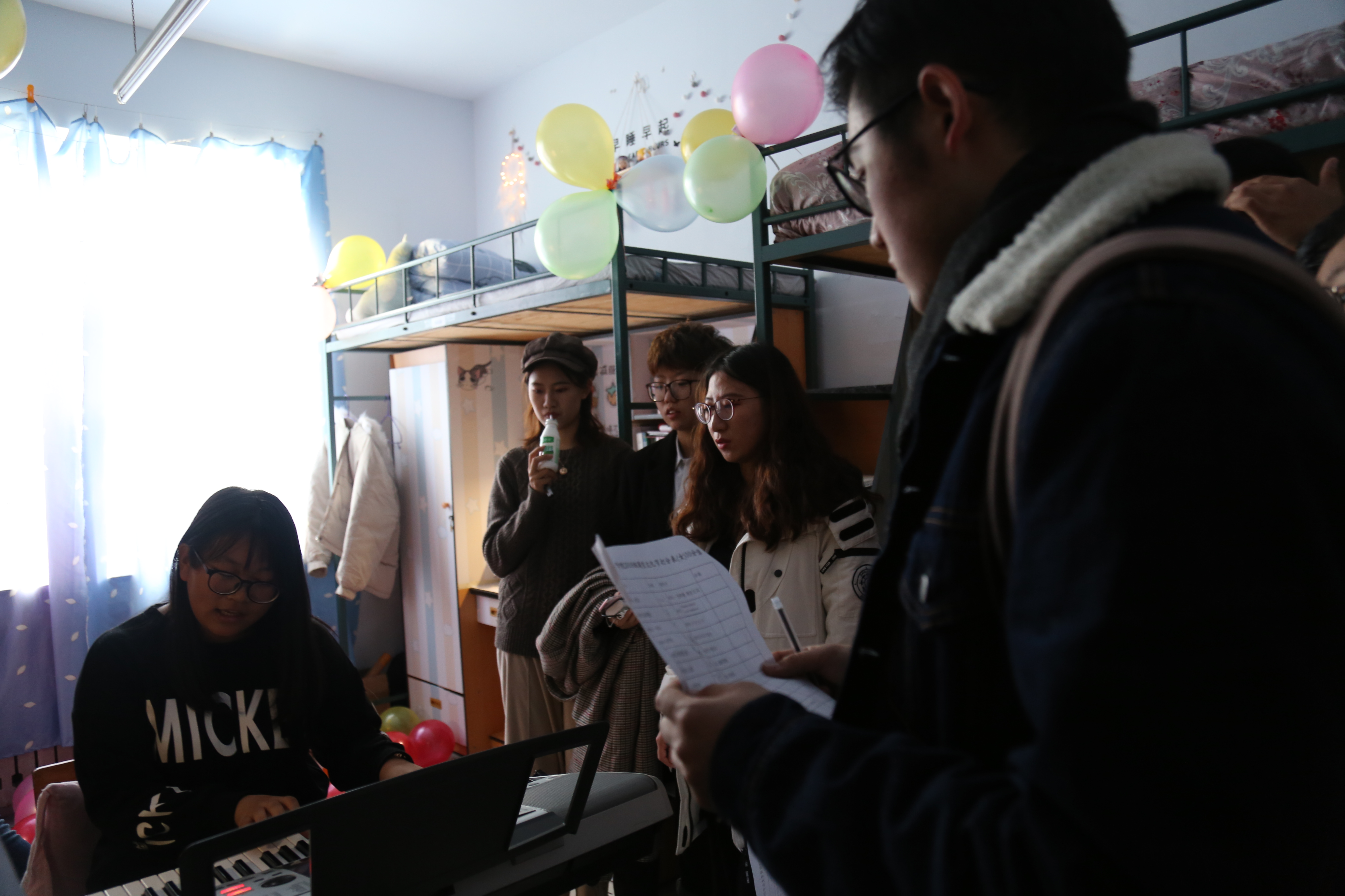一至四楼走廊部分由学生会女生部负责,受到了各院女生的一致夸赞。18级女生寝室各具特色,装饰的十分用心,走廊内的照片墙记录了同学们开学以来的点点滴滴,每间寝室都制定了自己的小目标,并有了自己寝室独特的名字,想象力十分丰富。有的宿舍在走廊的墙面上放了一点糖果,给大家品尝;有的宿舍装饰成了城堡,十分梦幻。活动现场气氛非常热闹,男女生联谊表演节目,弹电子琴、唱歌、跳舞等,十分精彩,大家都兴致盎然。