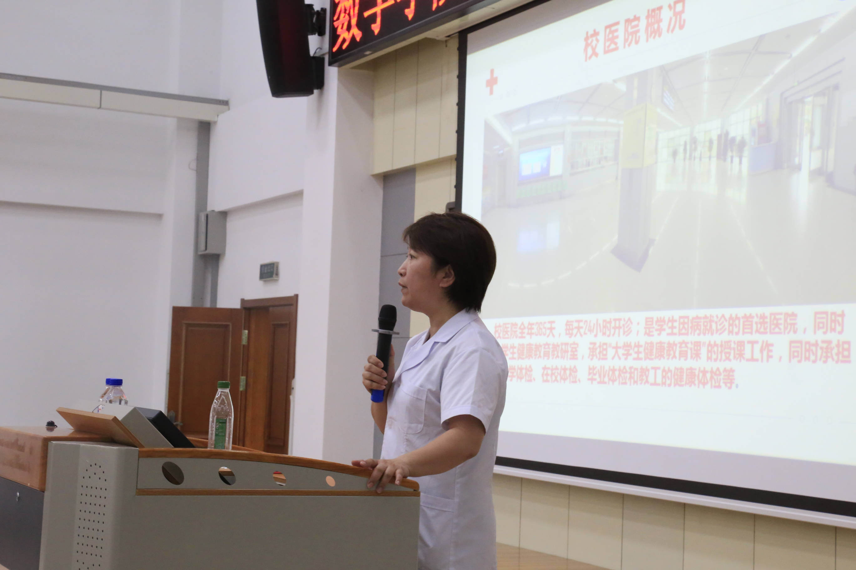 邀请到校医院的任艳蕾老师于数学楼二楼报告厅为2019级新生进行卫生保健教育。