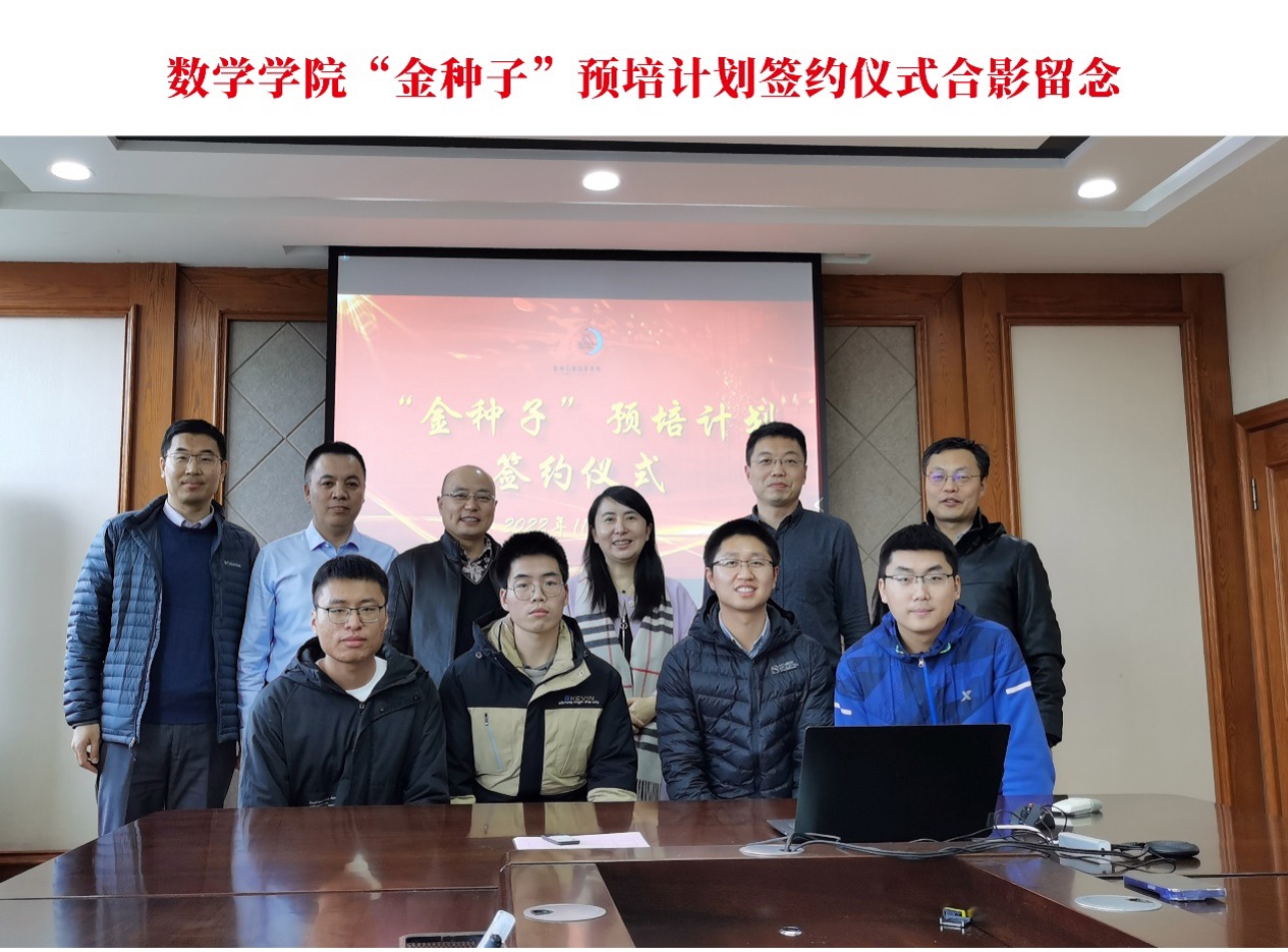 2022年11月18日,A片 第一届“金种子”预培人选签约仪式在数学楼三楼会议室举行。A片 党委书记王春朋、院长张然、培养教师李勇教授、生云鹤教授、张凯教授、“金种子”预培计划候选人及学院班子成员参加了本次会议,会议由王春朋书记主持。