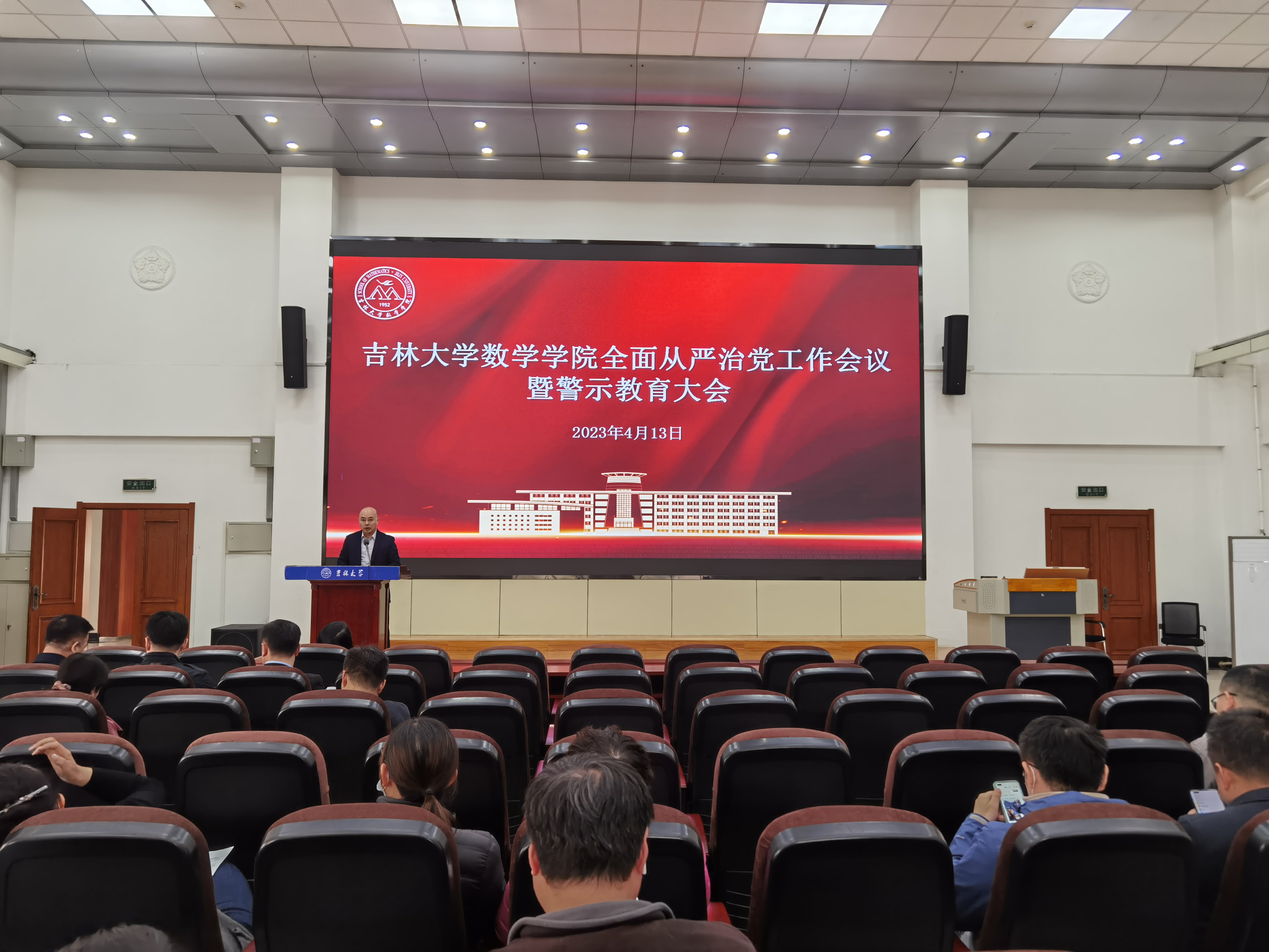 在数学楼二楼报告厅召开2023年全面从严治党工作会议暨警示教育大会。A片
