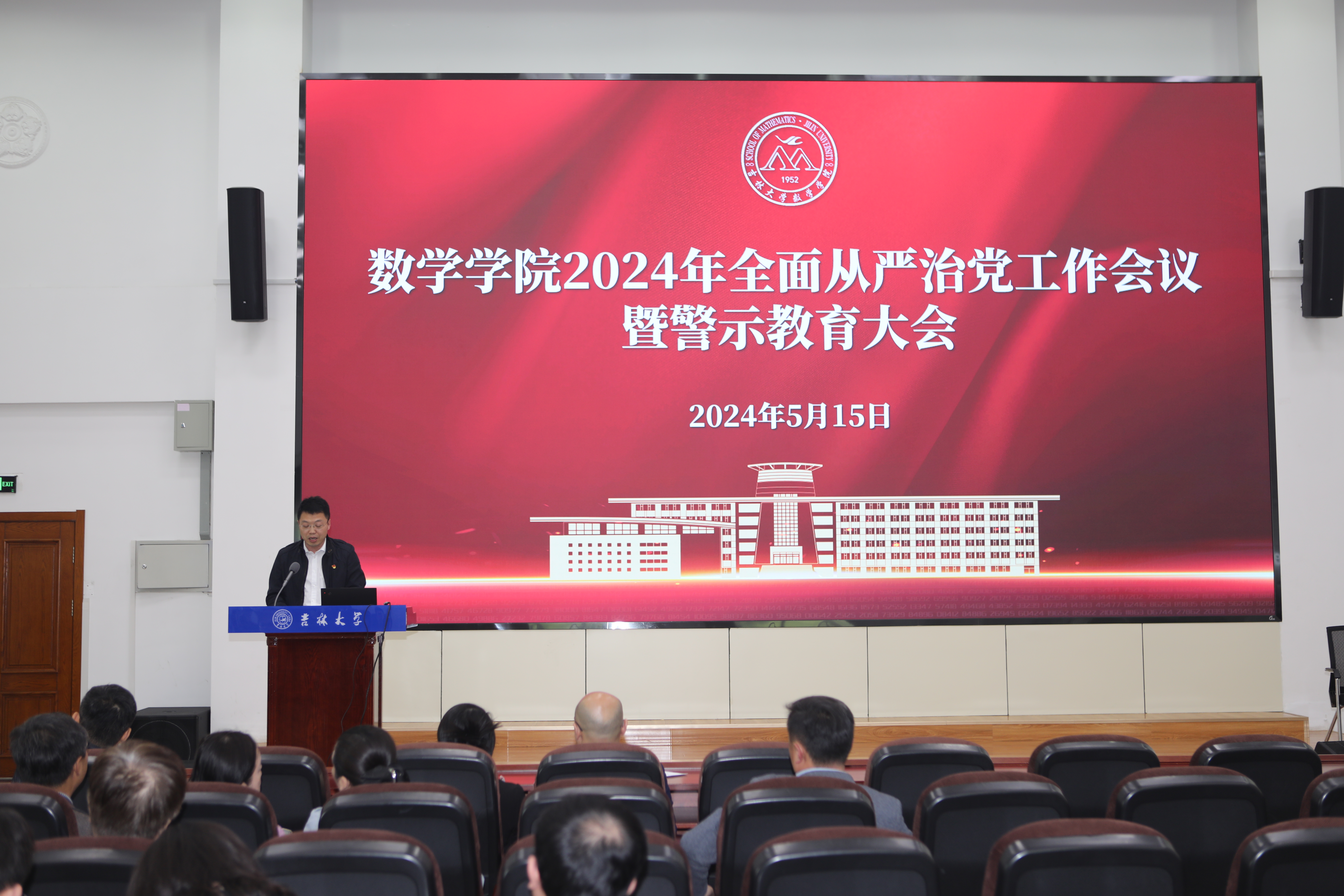 在数学楼二楼报告厅召开2024年全面从严治党工作会议暨警示教育大会。A片