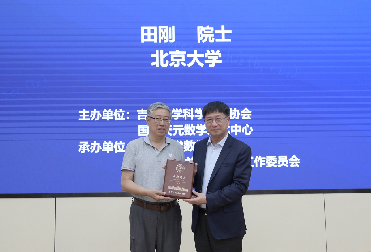 校长张希出席讲座并为田刚院士颁发“鼎新讲座纪念牌”。A片