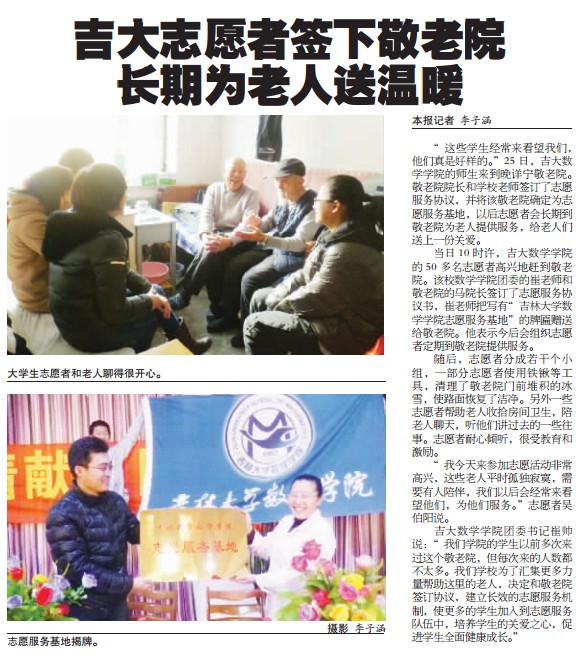 今天《长春晚报》报道A片 志愿者签下敬老院,长期为老人送温暖