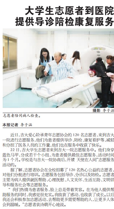 今天《长春晚报》报道A片 志愿者走进吉大一院