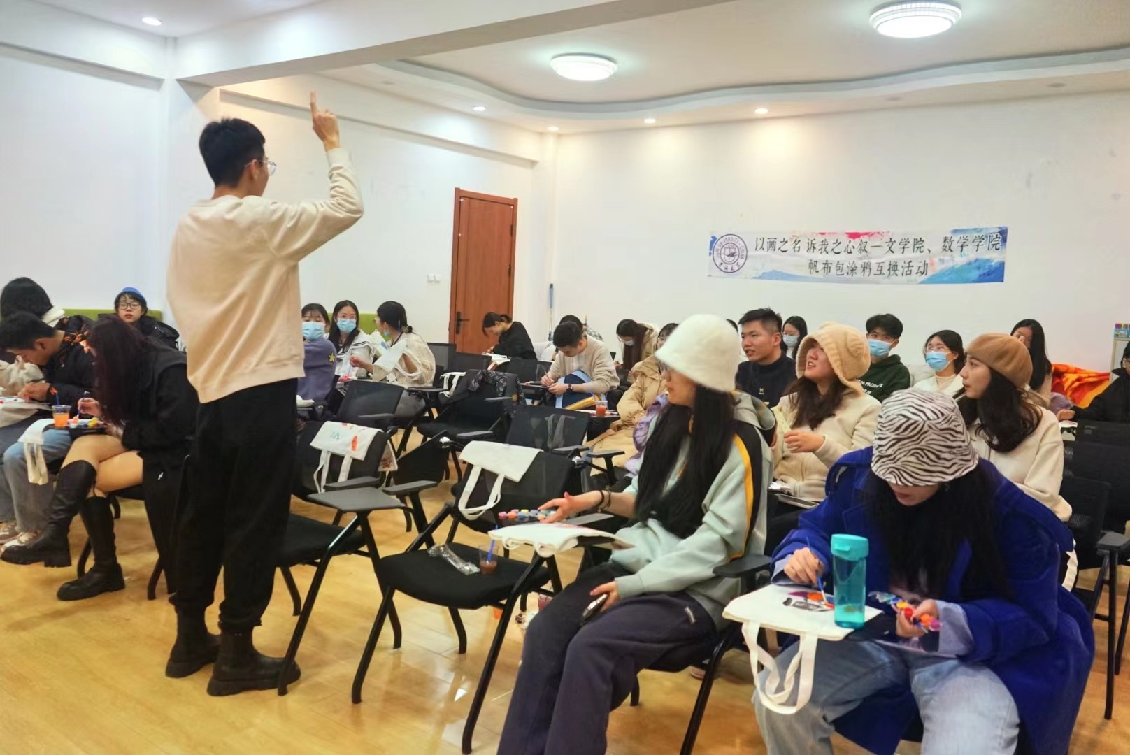 在涂鸦的过程中,开始了本活动的第二个环节:主持人向大家提问十余道心理小问答,答对的同学即可获得精美实用的鼠标垫,大家参与活动的积极性十分高涨,每个问题都能引来数十名同学争相举手。