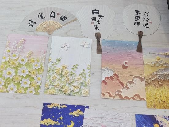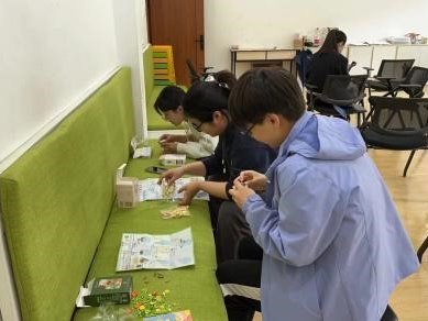 在线下环节,各学院参与活动的同学们相聚敬信教学楼心理团体辅导室。在工作人员的引导下,同学们纷纷投入到自己的创作过程中,或者拼凑积木花,或者制作手工团扇。在制作结束之后,同学们也纷纷在明信片上留下了一些祝福语,这些明信片最终一张张地缓慢地落在收纳盒里。积木花、团扇和明信片,无一不见证烦恼的倾诉、友谊的建立。