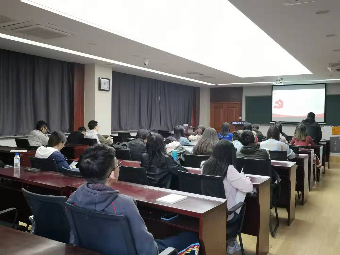 第一、第二党支部于2019年10月17日中午在数学楼第二报告厅进行“不忘初心、牢记使命”主题教育,组织集中学习了习近平总书记视察北京香山革命纪念地时的重要讲话,和在中央党校中青年干部培训班开班式的重要讲话。本次主题教育旨在使广大党员干部充分认识历史、缅怀历史,特别是年轻干部要经受严格的思想淬炼、政治历练、实践锻炼,发扬斗争精神,增强斗争本领,为实现“两个一百年”奋斗目标、实现中华民族伟大复兴的中国梦而顽强奋斗。
