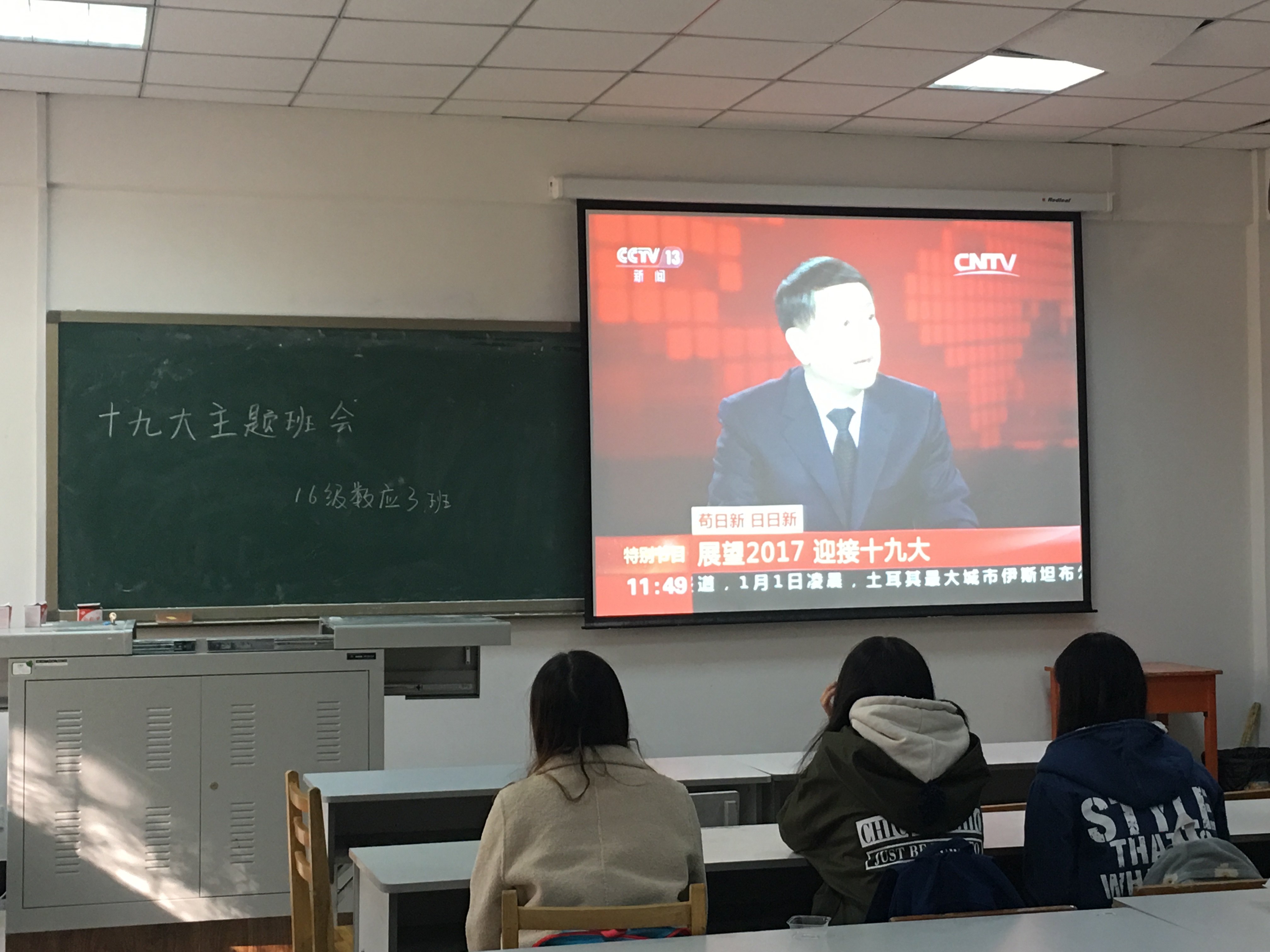 班会开始,班长赵中源与团支书司彤对十九大的重要意义和政策进行了介绍。为同学们播放了习近平总书记讲话的精简视频,看完后大家都受益匪浅,深刻的认识到了我国目前所处的阶段于主要矛盾的变化。完成后组织同学们进行了讨论,概括十九大中我国政策的变化。班级代表刘俊鹏进行了发言,简述自己在习近平总书记讲话中找到的我国新的决策与政治思想的创新。最后,班长进行了总结性发言。