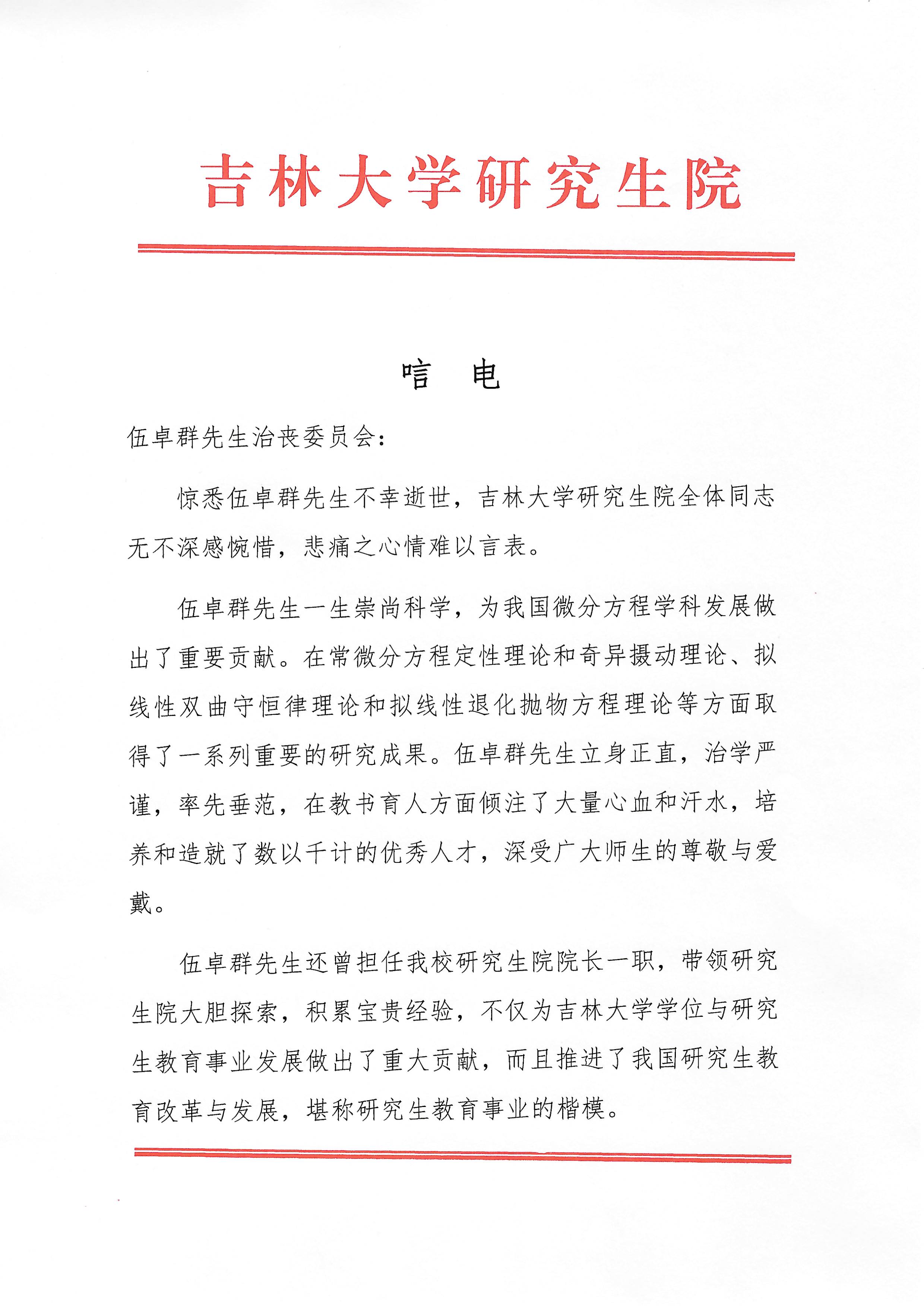 长沙市长郡中学唁电
